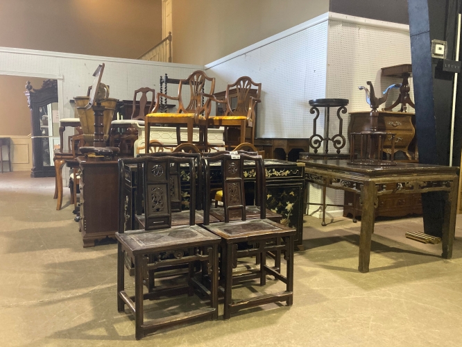 Each auction features over 6,000 pieces of furniture, chandeliers, collectibles, glassware and art. Furniture includes a variety of 18th, 19th and 20th century American, Continental and Victorian pieces as well as modern design.